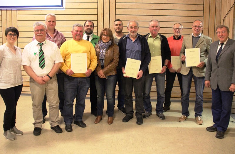 verdiente Mitglieder mit Urkunden und Vereinsehrennadeln auszuzeichnen.