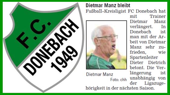 Buchener Fußball-Kreisligist FC Donebach hat Dietmar Manz als Nachfolger für
